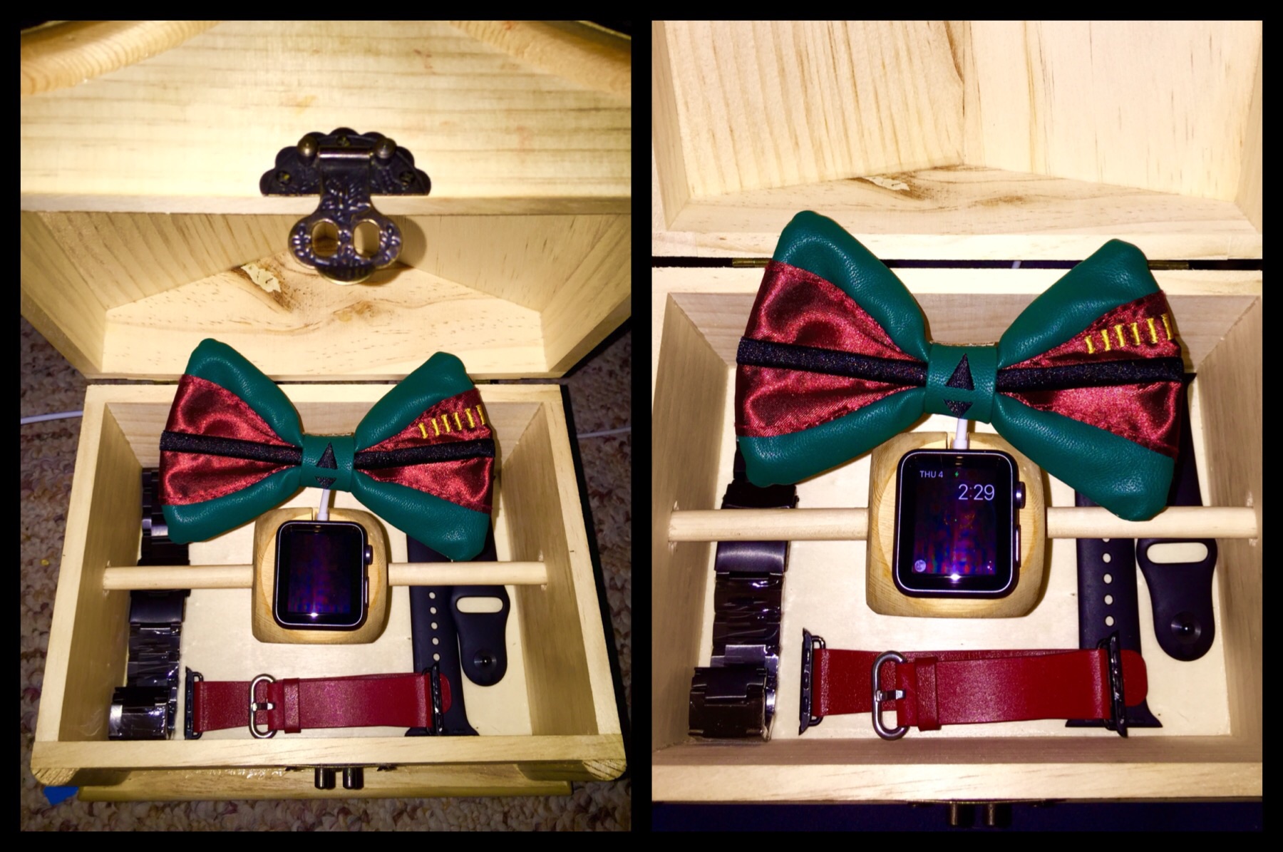 I know it isn't the best looking stand compared to all the awesome stuff everyone is making, but. My kids made this for me. They are 8 and 3 and they decided what kind of "stand" I needed. With a little bit of help from their Dad, they made me a Watch Charging Chest where I can store my bands under where the Watch is docked. There's still some painting to do but this is what it looks like as of now and I LOVE it!
