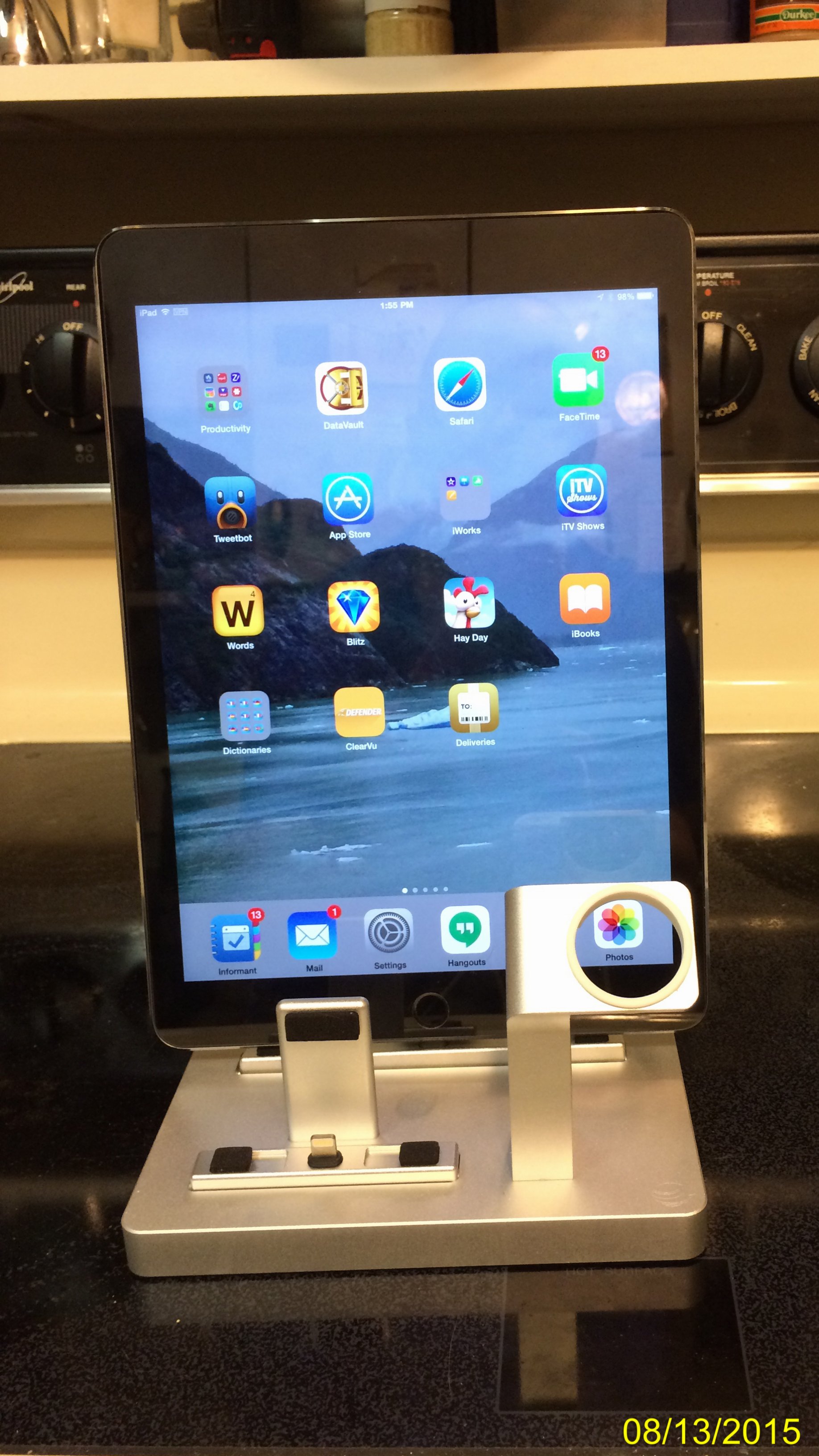 I started by putting my iPad Air 2 on the stand. It's heavy enough that it holds well even with only the iPad on. I quickly started adding everything else.