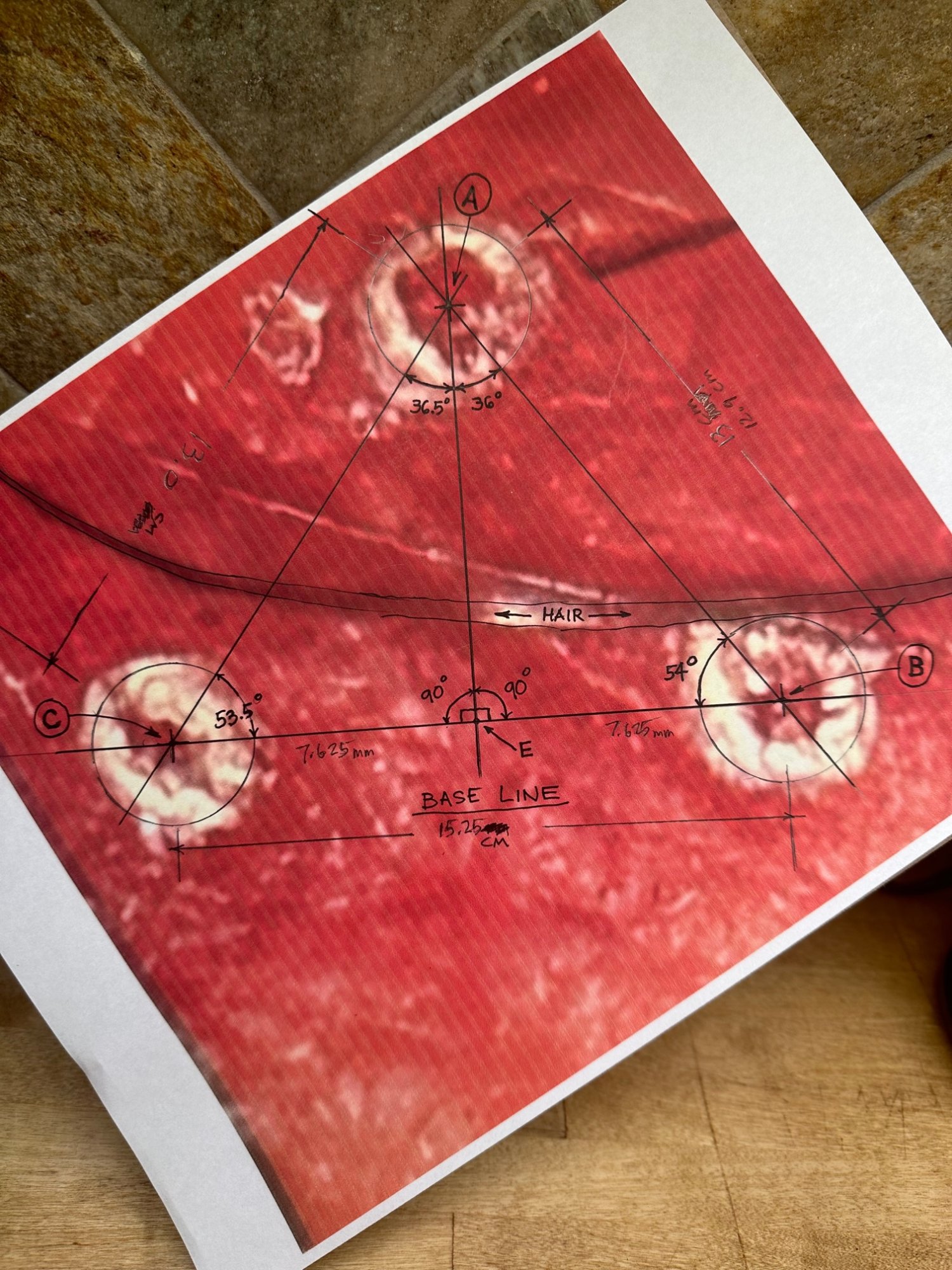 you are not correct on your geometry drawing... geometry is simple. the image needs to be rotated. look at that hair. I can also send a current photo, details of treatment, whatever. here is the zoomed image photo again for all to see. notice location of the hair.