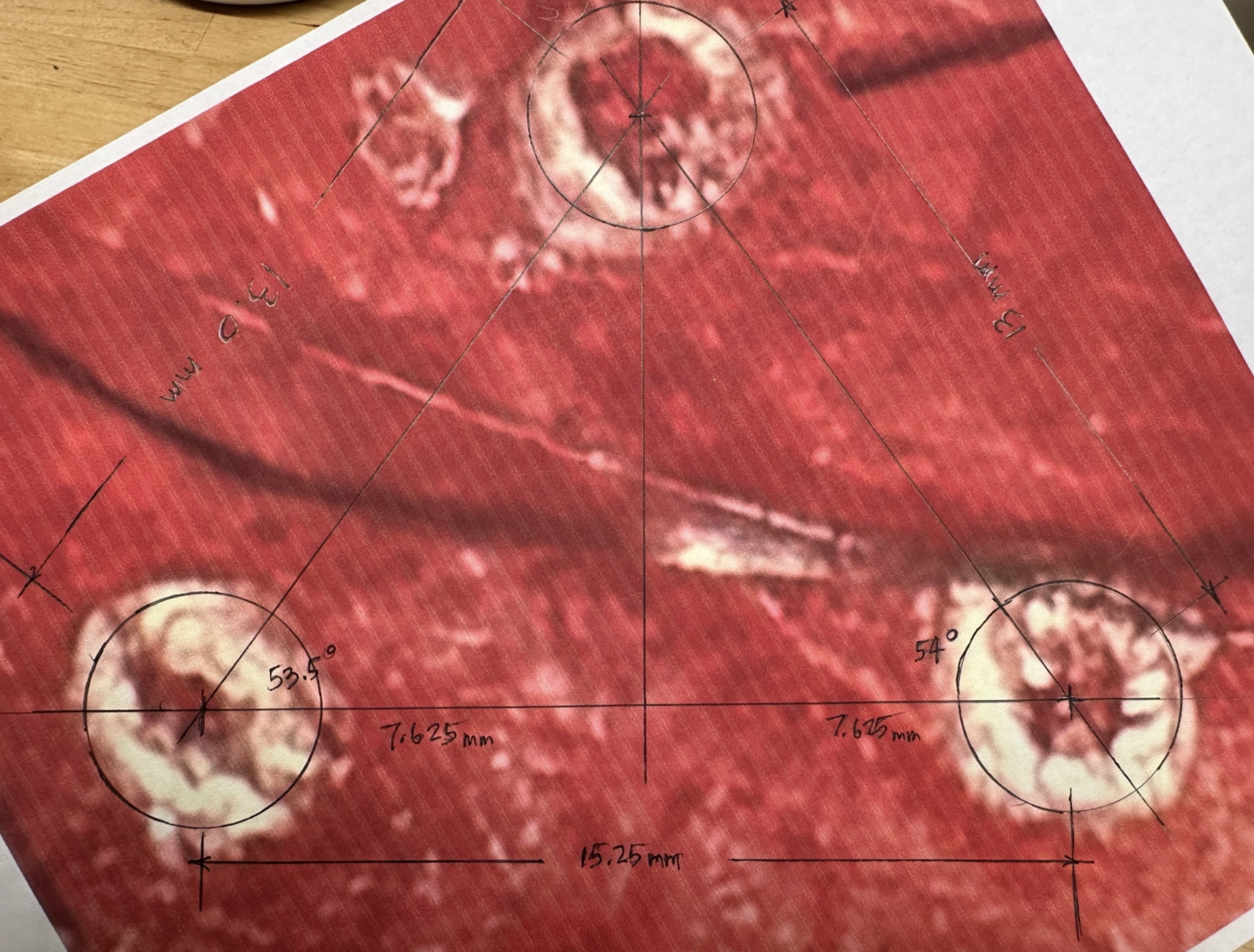 below ive attached an image of that photo and blown it up and drawn on some geometry lines. and measurements.