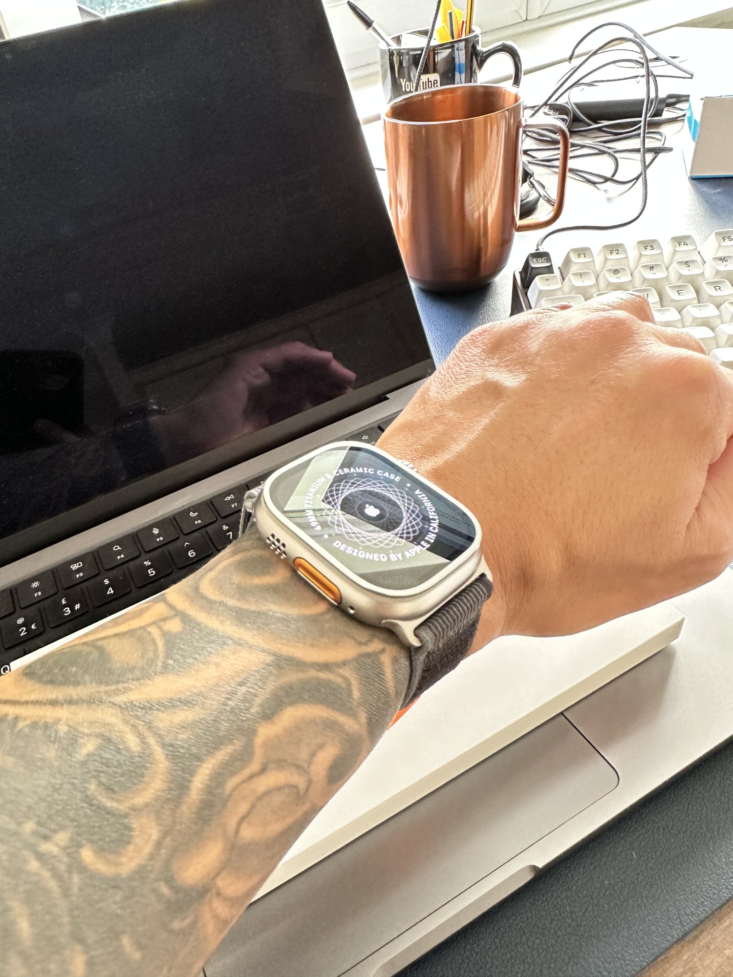 Love that combo. I'll have to wait until early November for my band to come in (ordered the Ultra with the orange Alpine)
