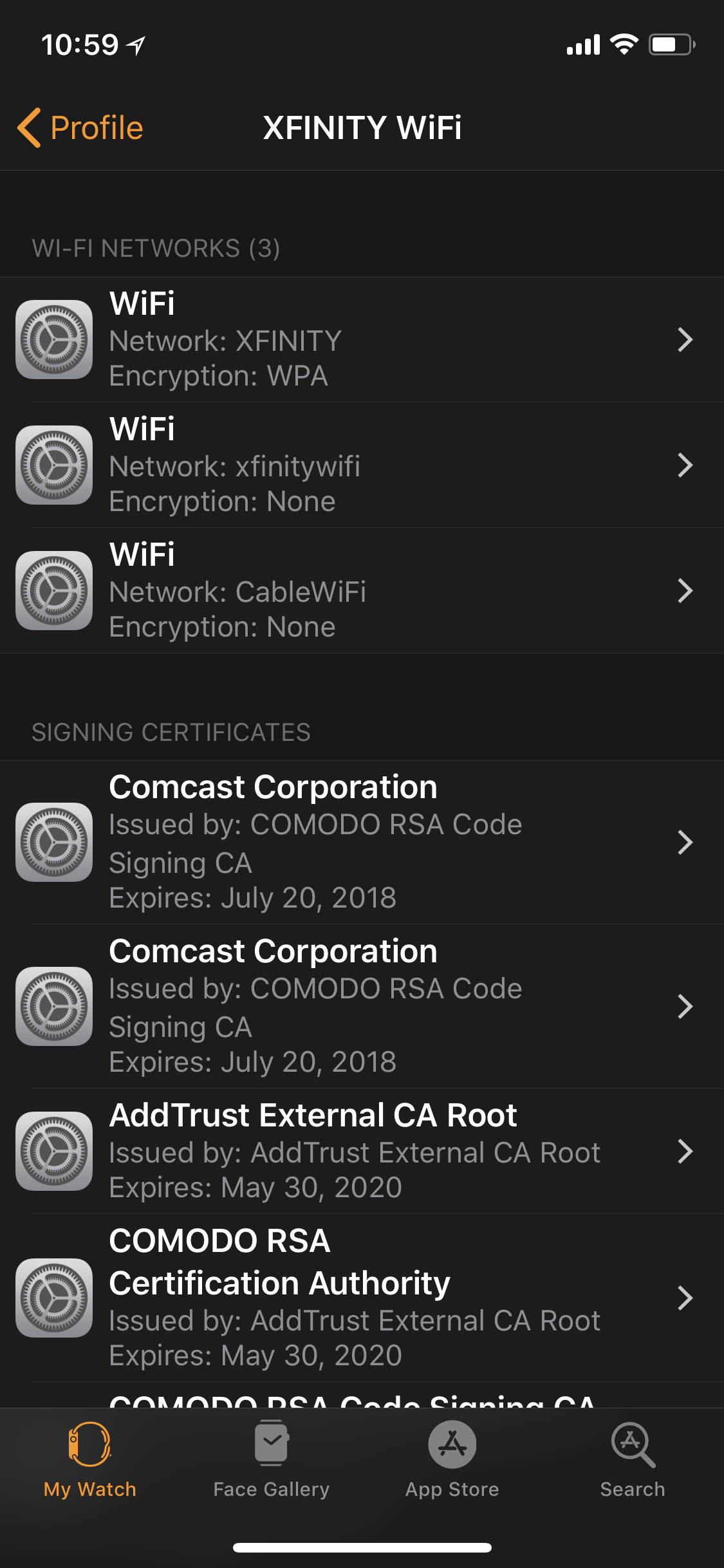 The watch is running watchOS 4.2, and my iPhone / MacBook Pro are both connected to this WiFi network pretty much constantly, and the necessary credentials are stored on my iCloud Keychain.