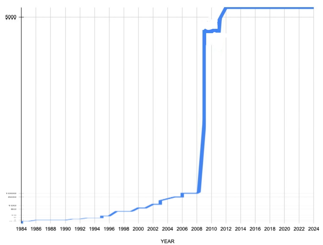 Because technology of RAM is improving at exponential scale.What dishonest graphs. Why is the X-Axis logarithmic? 🤦🏻♂️