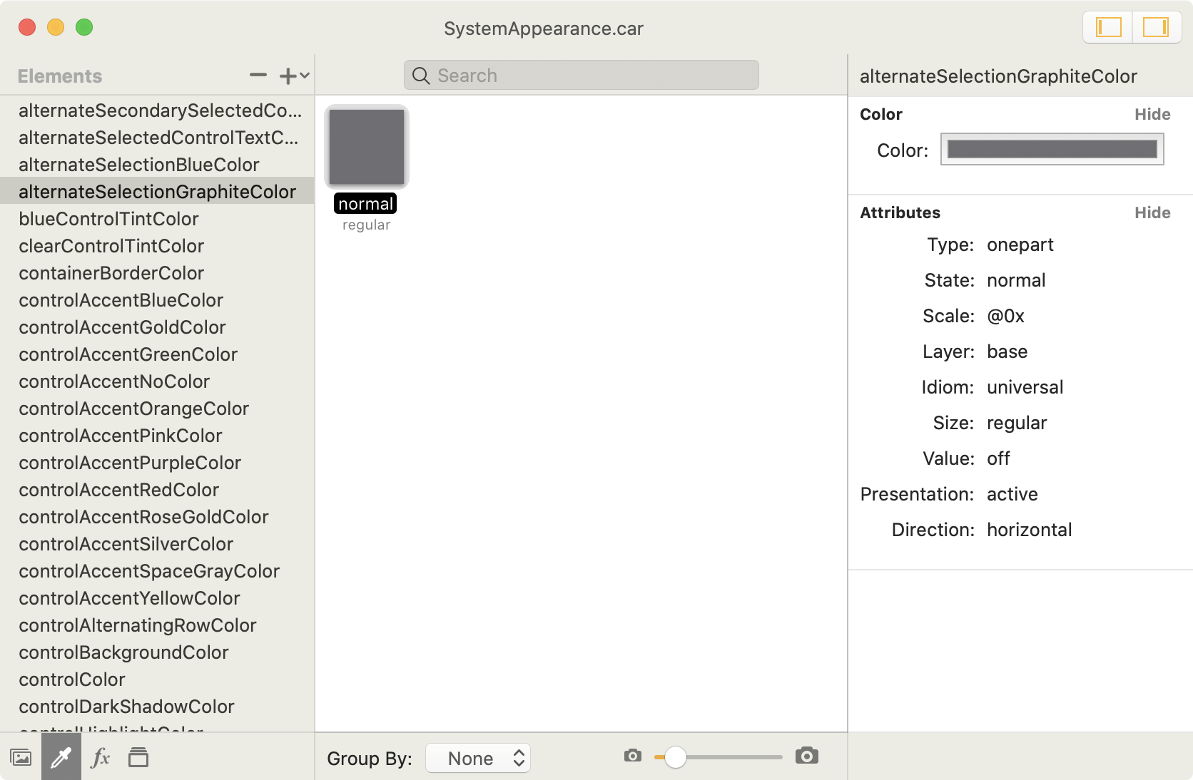 That accent-color is being changed to grey by each GraphiteAppearance.car-file... but I can't find which element or rendition does the trick.