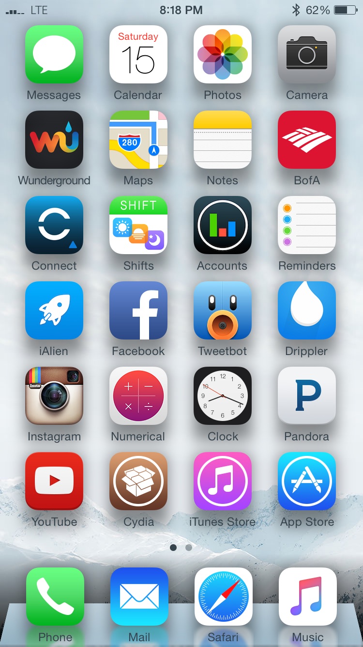 I know I've dropped this in a few places but it illustrates a point well here. Drop shadows are exactly what iOS needs. The dock I'm using below makes a huge difference too.