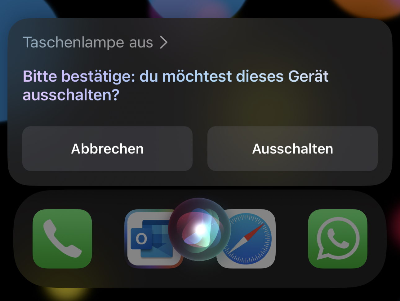 - I ask Siri to turn on the flashlight („Taschenlampe an“)