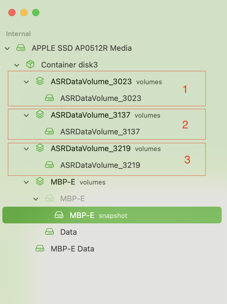 See enclosed pic. Is this normal? Why are they there? There are 3 ASRDataVolume ones, I numbered them.