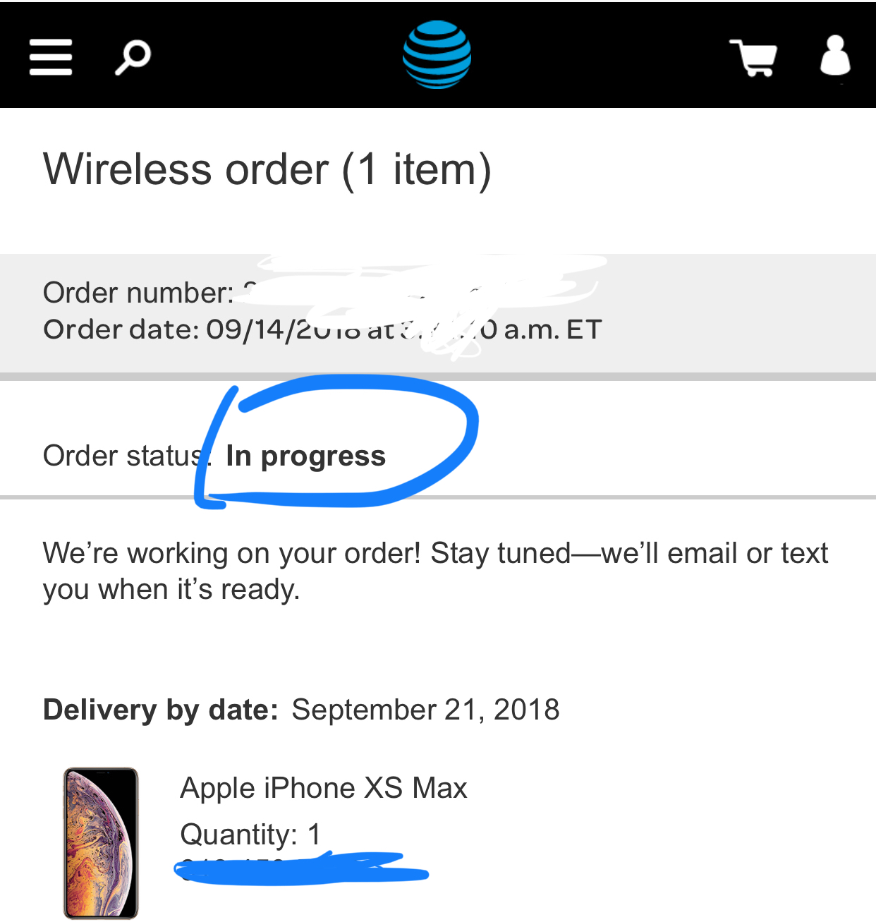 Mine says in progress for Sep 21 estimated delivery. SG 512GB XS Max.Phones still showing as shipping 9/21... 22 hours after orders went live. Are they really that well stocked/unordered, or is AT&T going to start bumping people? I’ve never seen such a ho-hum launch.