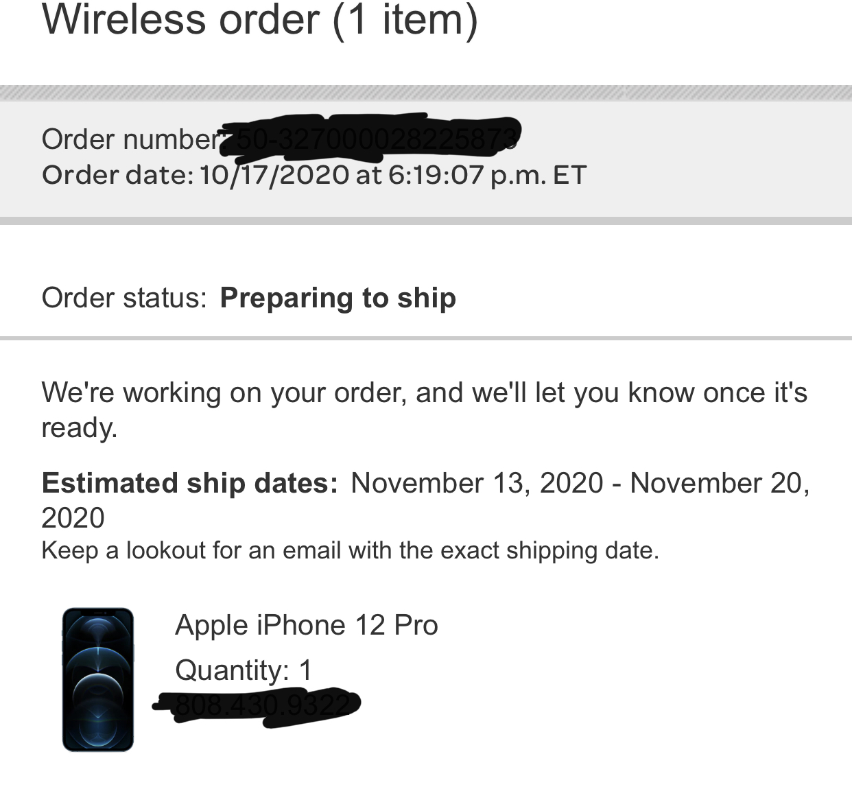 Ordered iphone 12 pro pacific blue 128gb and have shipping date of November 13-20. Still says in progress and hasn't changed since. I did order and silver version of the 12 pro 128gb and that has a ship date of October 30-6 and it shipped friday the 23 on release day. Any chance mine might come soon or do I just have to rough it out waiting for it to ship.