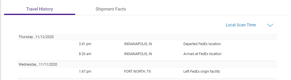 My fedex left tx to Indiana. I’m in Georgia. So it’s moving.