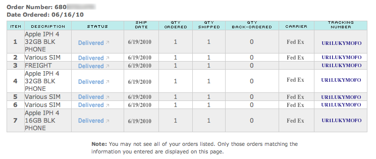 I ordered my iphone 4 through premier and i have just received an email with a valid order number. So far all i had from ATT Premier was an confimation order email. If any of you have premier orders keep a look out for an email with a 5 digit order number. Another thing, is that when I put the order number in instead of my phone number the backorder is 0. When I checked it with my phone number it had both the progress and backorder box had a 1 inside.