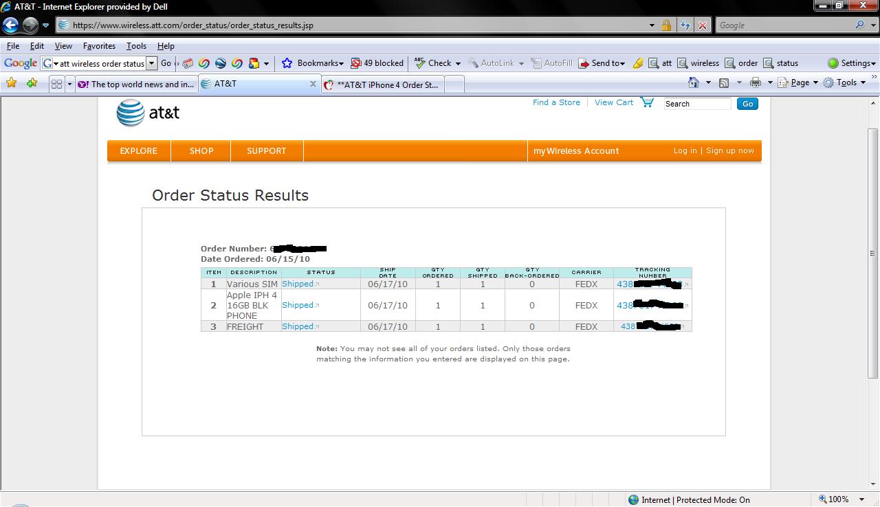 Ordered: 6/15/10 - 2:15pm CST @ ATT Store