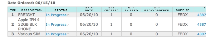 I ordered two iphone 4's as upgrades on the 15th prior to 8 AM via att premier website.  One says shipped and gives the tracking number, the other says back-ordered.