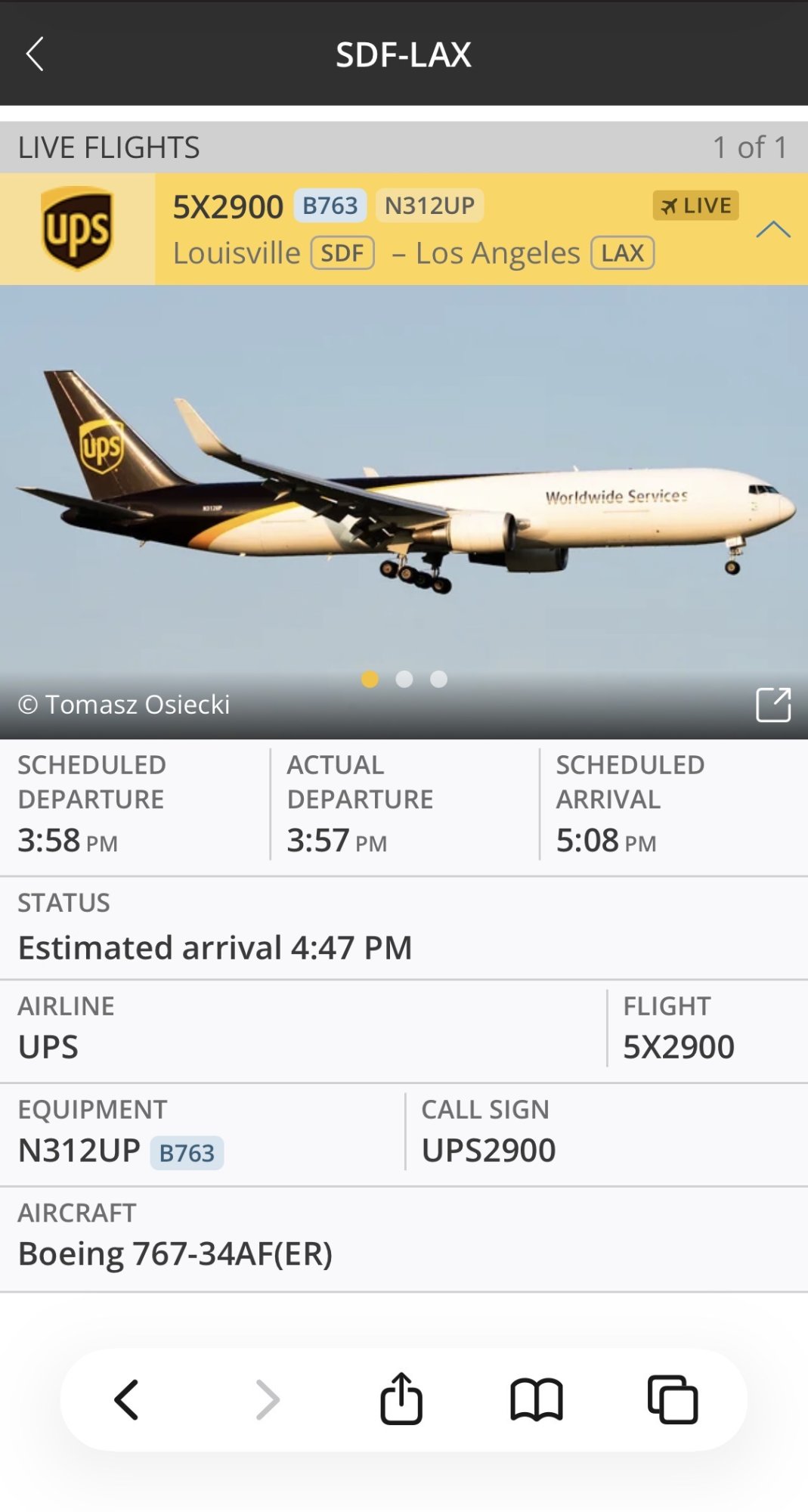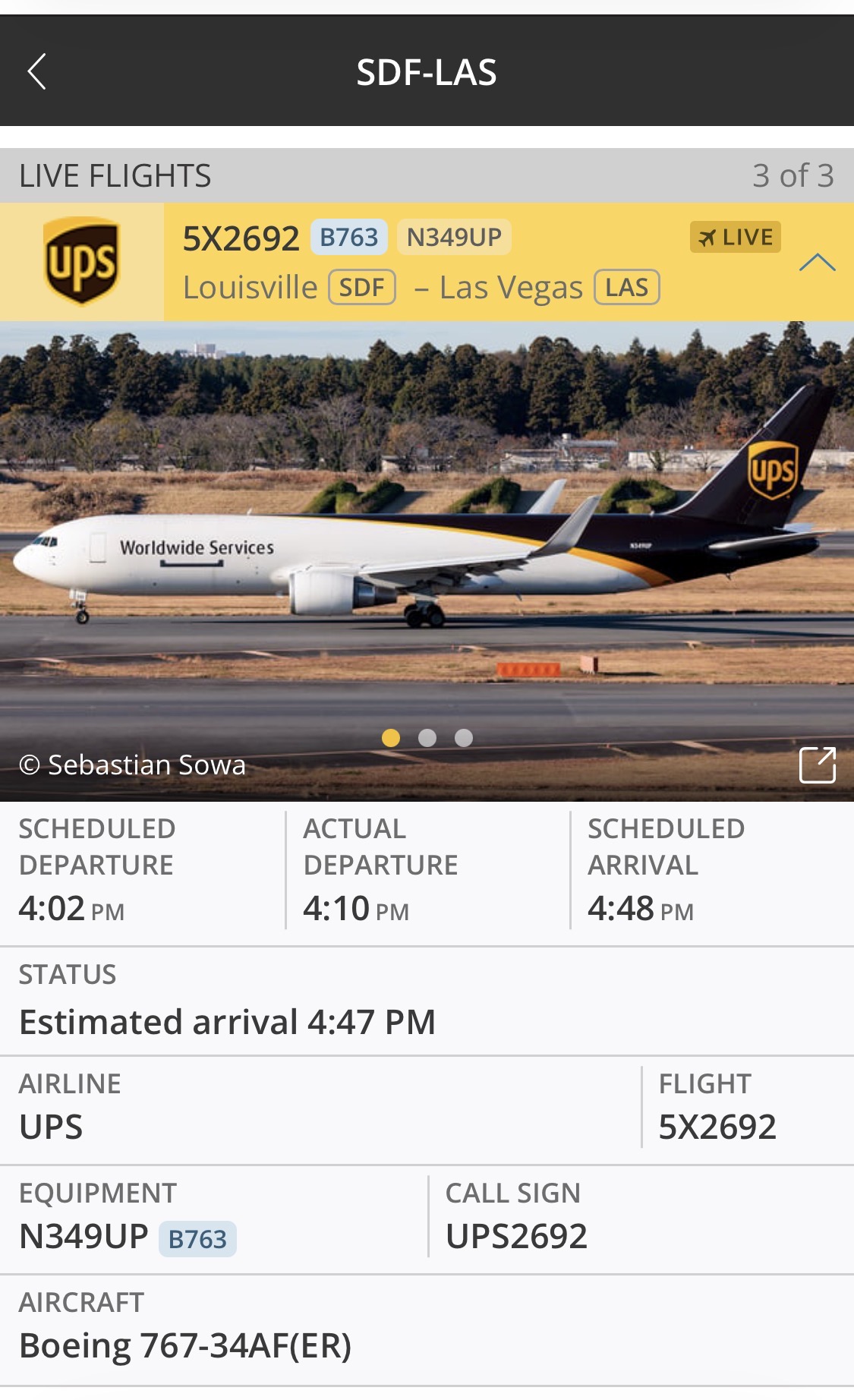 My shipment left Louisville at 3:45pm. UPS. I’m in Los Angeles area. What flight is it?