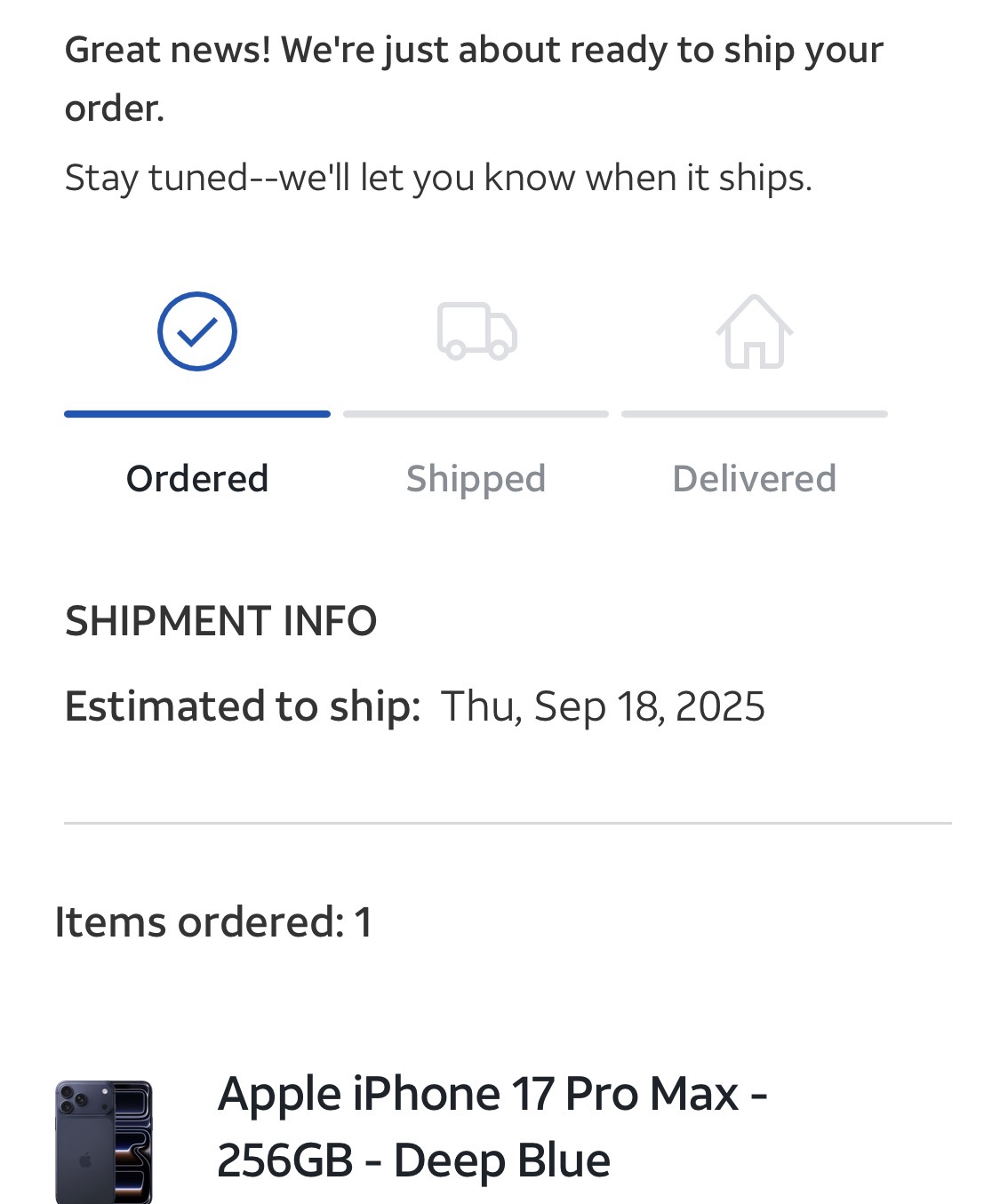 i have nothing on my end as well and still in pre order statusNothing on UPS as well. I just moved to a new place and just got the MyChoice/Advanced Shipment stuff set up right before the preorder process so if my phone truly hasn't started moving through the system then I bet that's leading to me not seeing anything.
