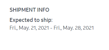I stopped guessing. I have those ship by dates and figure it’ll be waiting for me when I get back from vacation at the end of next week.