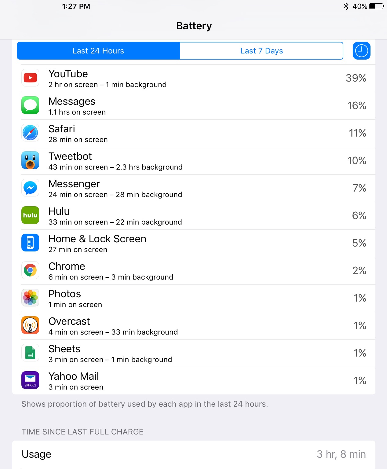 Down to 40% after only 3 hours of usage. I'm connected to an Anker keyboard case. Could that be draining the battery?