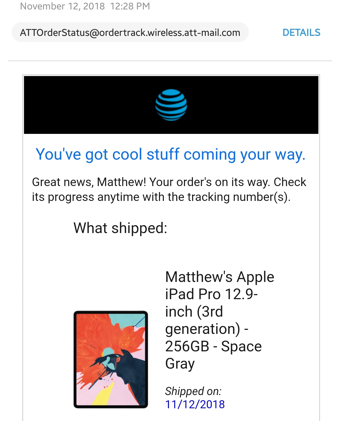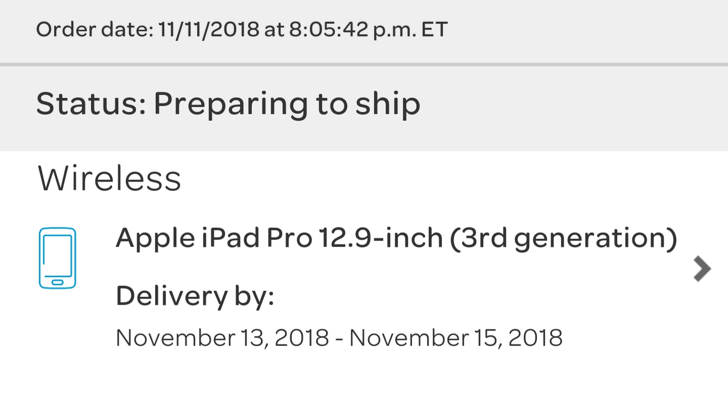 I ordered the 12.9, 512 Silver through ATT Premier on 11/9 and it's out for delivery today.I ordered an 11 inch 512gb yesterday and it shipped today. It should be here tomorrow. I’ve never had such fast shipping with AT&T in my life.