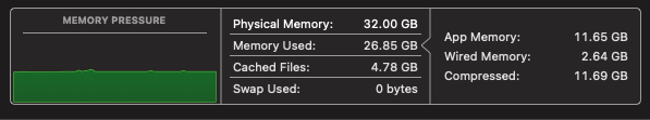 BUT, I did find something else. I noticed that whenever the audio popping issue started happening, the memory pressure indicator in activity monitor would turn orange. And the swap used number would increase. By A LOT. Even though memory used number was no where near the my physical memory limit (32 GB). I started looking into how swap is configured on MacOS because the aggressive use of swap when not at the memory limit seemed odd to me.
