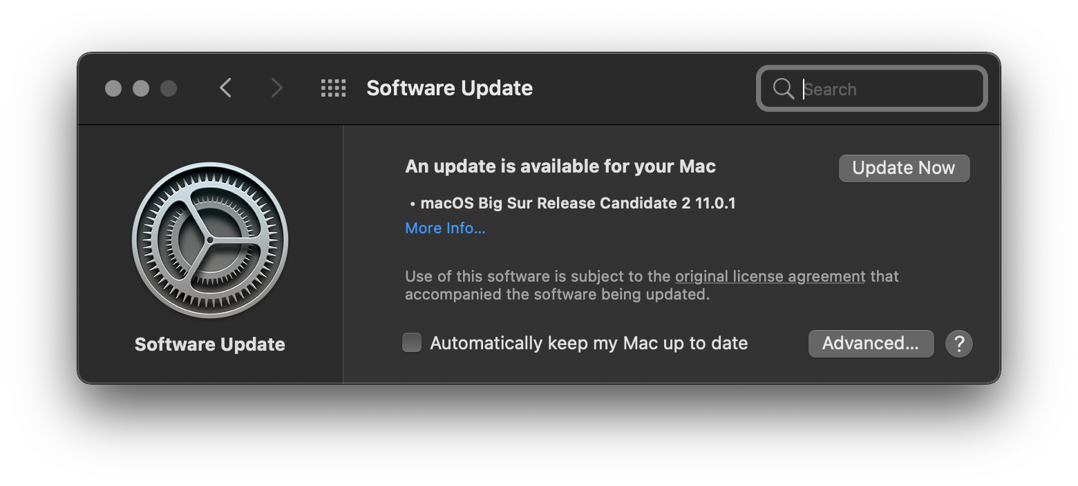 at 8:30pm EST it pushed the Safari update to me. Immediately after installing it, it allowed me to start the Big Sur update.