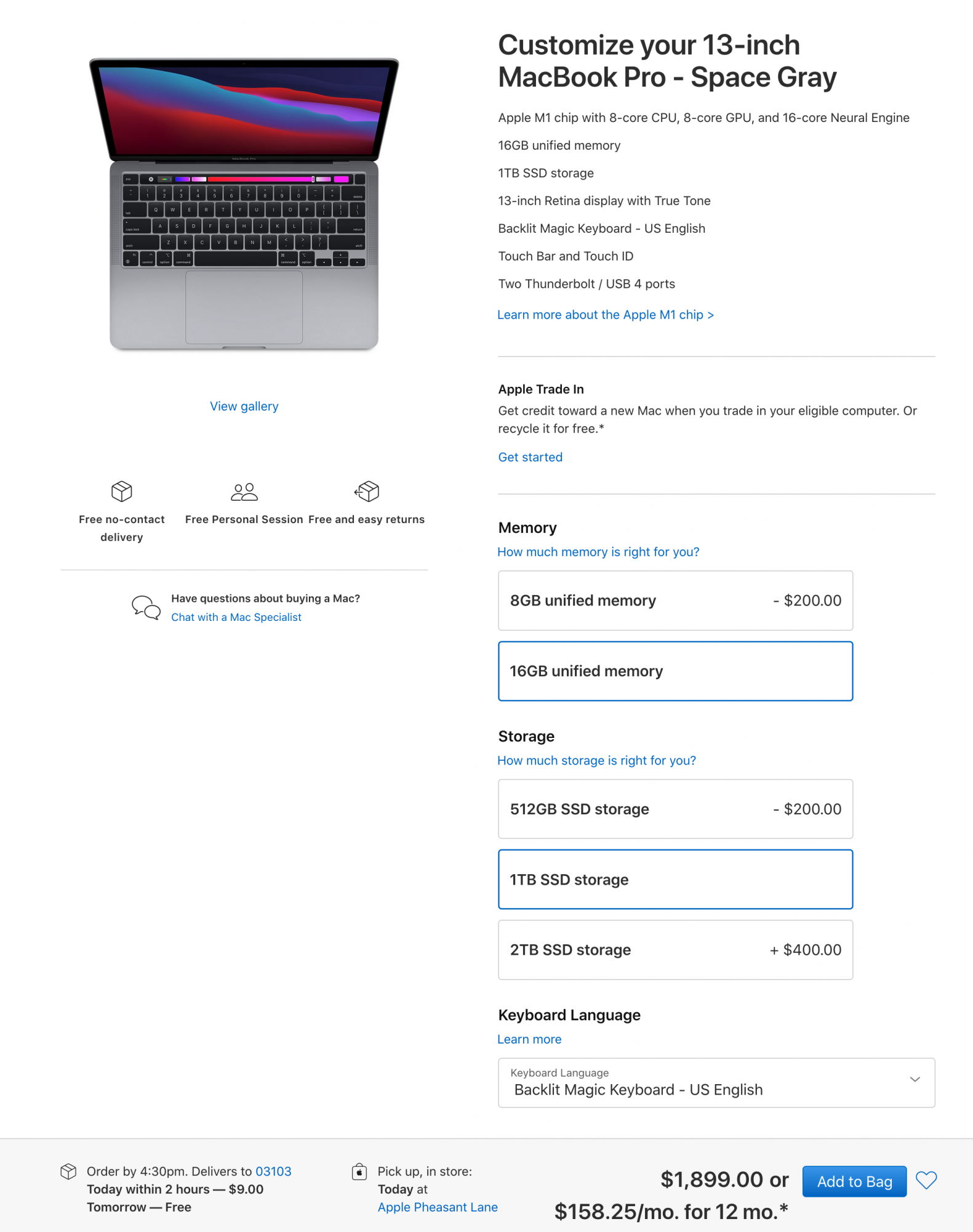 I spilled a sip of coffee on my M1 MacBook Pro (16GB/1TB), which of course killed the machine, and I had to take it back to Apple for service under AppleCare+ — thankfully, AppleCare+ now covers accidental damage. It's going to cost me US$299 to replace my machine. Since this laptop cost me US$1900, getting a new one after my stupid mistake for just 16% of the purchase price seems like a fair deal to me. Count me an AppleCare+ customer for life. There will be other incidents.