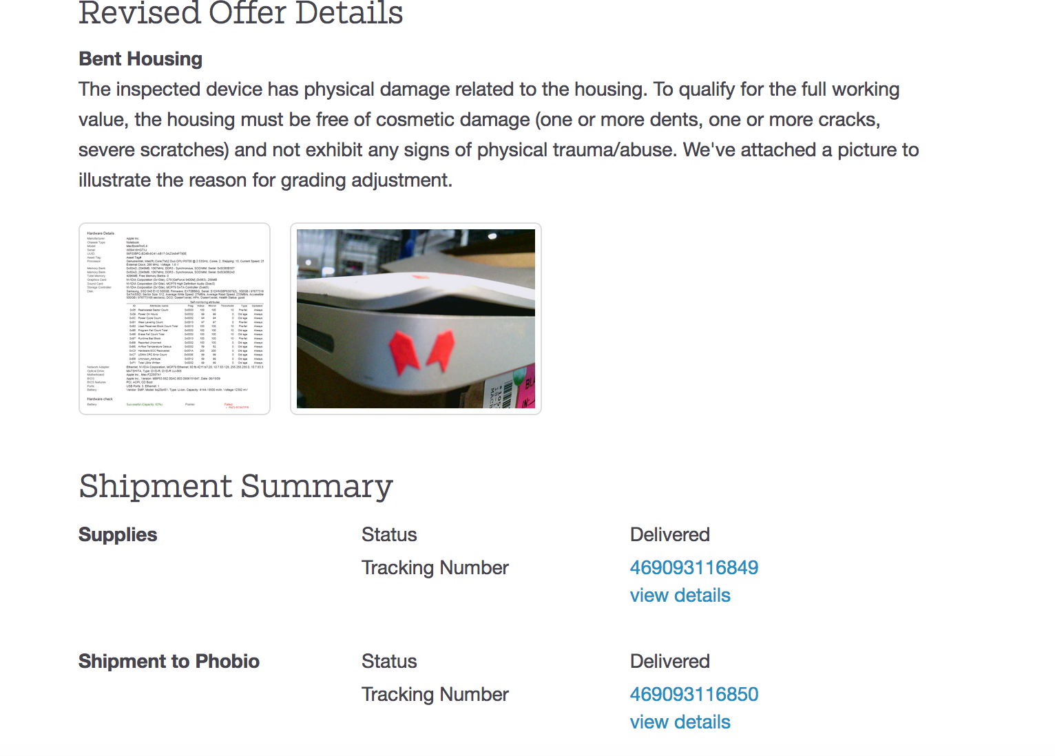 Just like numerous reports to the BBB, my computer supposedly arrived "damaged". The MacBook did not have a scratch on it when I shipped it. It was always kept in a case, and had only been used a few times in the last 5 years. The Rep at Apple even commented that it looked new. The computer was sent back to me finally and it had damage in the same area as so many other "damaged" computers. Wow, what a coincidence that they are all damaged in shipping in the same area.