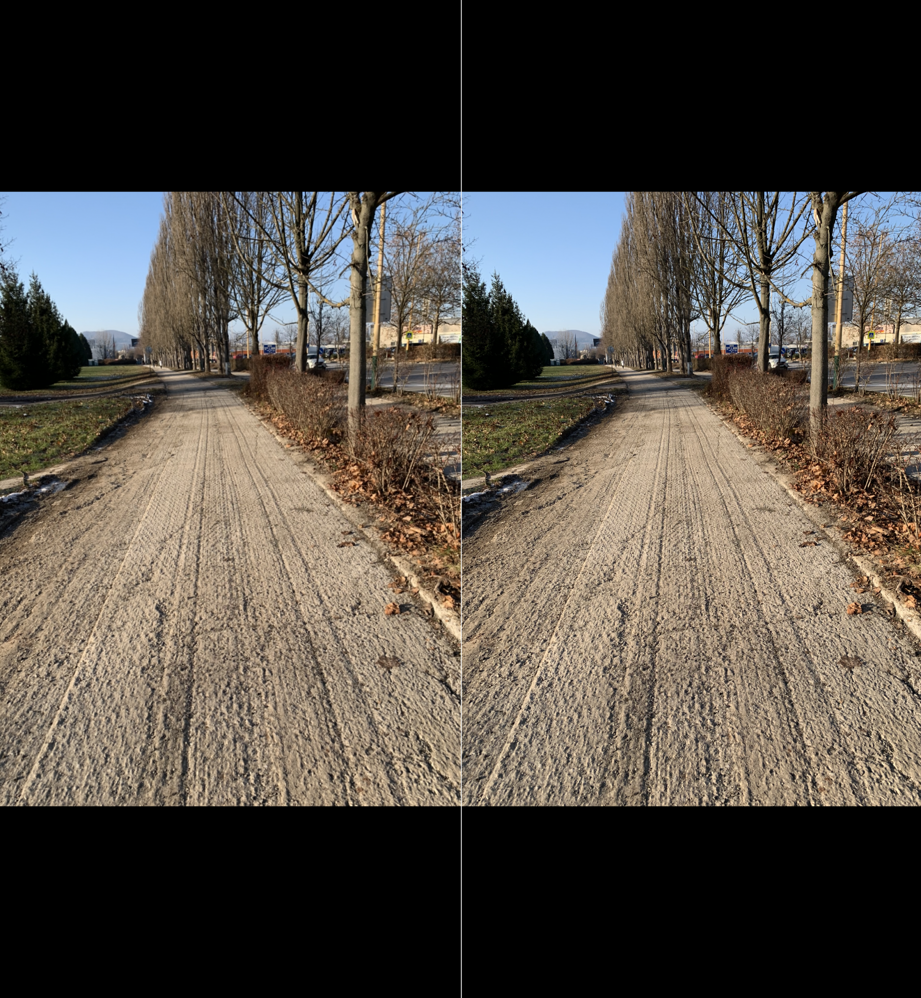Just so you guys know, the issue only occurs when you are viewing the photo on your phone as it’s the phone preview that is not rendering the full picture. When you upload or send your photo, it’s the full quality version. Therefore, the photos you both shared are an identical photo.