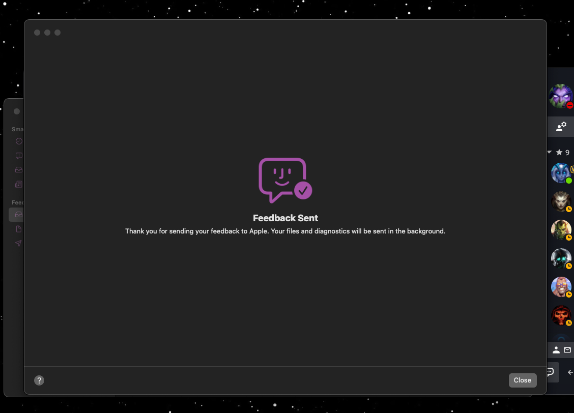 I have sent feedback too ✅I went ahead and submitted feedback for the Mac OS Beta with these contents, and I would love for you to do the same.