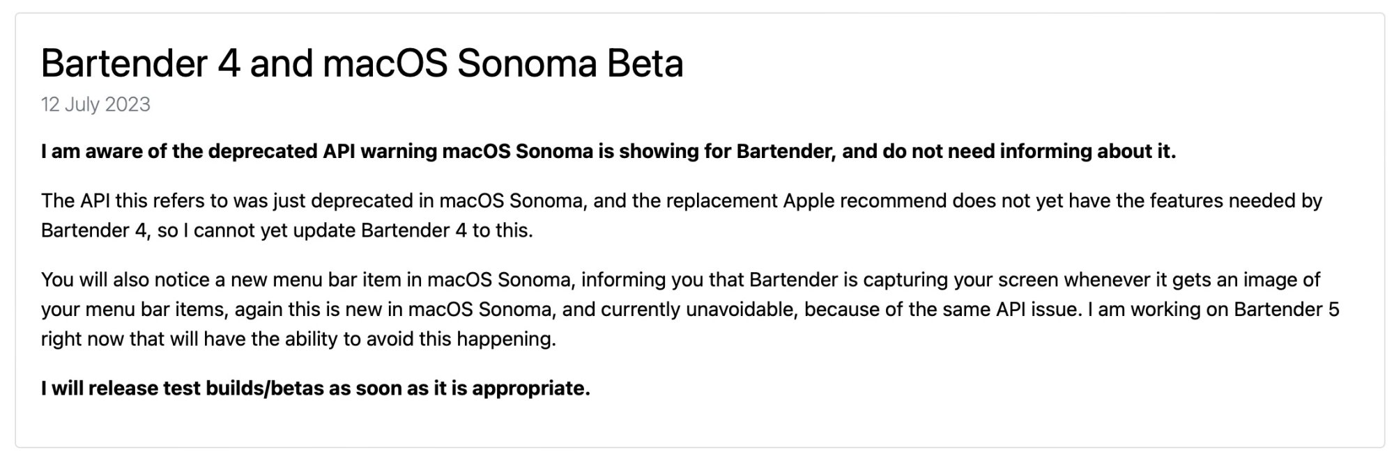 But I'm curious, on the latest Sonoma beta does Bartender function better now?