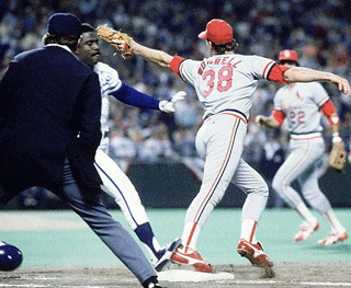 #1 - Hands down, but up. And we're gonna hear about Gaylord Perry again, and Sammy Sosa again and they'll probably play Sticky Fingers or Your Cheatin' Heart. Odds are they'll even throw in Brett's pine tar game of '83 and then talk about the all time controversial plays of ALC, NLC and Series. As long as Carpenter is on, tonight, I'll enjoy the muted silence.IJ Reilly said:Okay, it's wagering time -- but not on the outcome of this game, or even of the Series. The bet is how long it will take Buck & Co. tonight to show us a picture of Kenny Rogers' hand. The choice are: