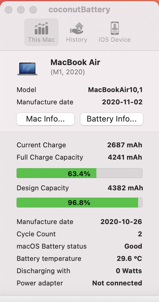 I got my m1 mba today and when I check with coconut battery I see %98.8