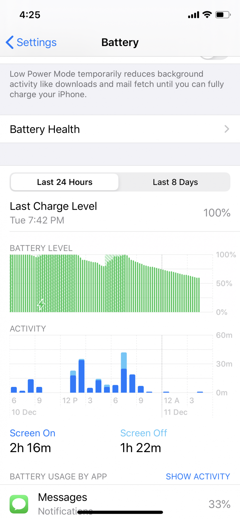 Since updating to iOS 13.2.3 etc I was suffering from severe battery drain for the first time ever (iPhone 7 Plus). I always done the updates via OTA but decided to do it via iTunes this time as it doesn't just do a patch update. I know it's only 3 1/2 hours in but I`m still at 100% with minimal use but it was draining before on standby. All background refresh always turned off etc. Looking good so far.