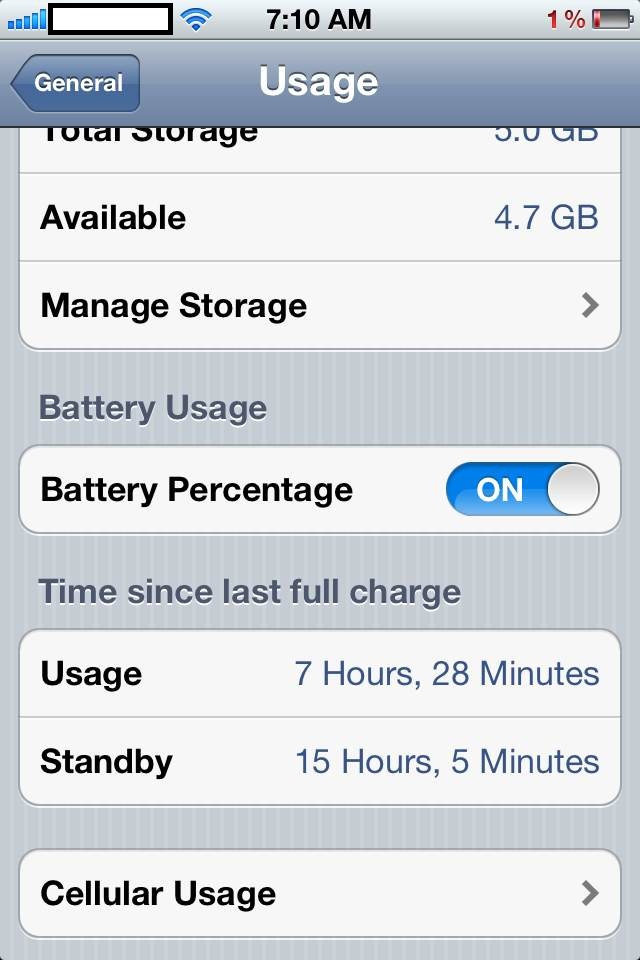Here's a screenshot when I hit 1% this morning. One thing to note, which doubt it matters, is that this is during my "full drain" period after installing the tweak. In the interest of being fair I'll at least give it a "charge up fully after full drain and try again" just as a courtesy.