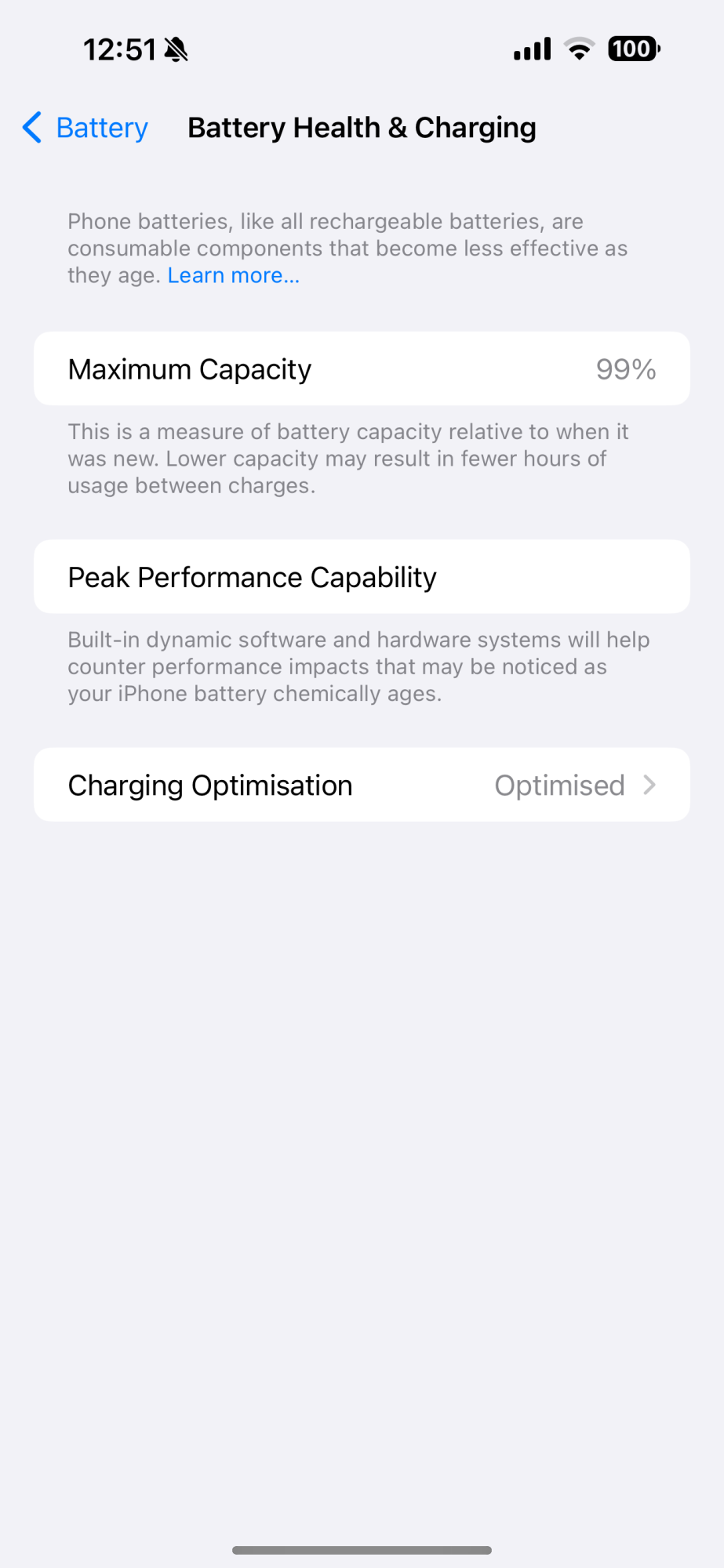 Its obviously a problem that they haven't fixed since the 14 pros had the same issue, garbage batteries.I am glad it’s not just me then after 26 charges down to 99% health. Thought my 14 Pro was bad but now same issue sooner. I understand it’s a battery etc but as other people have stated it’s bad that from the iPhone 6 to the 11 Pro Max my battery health always stated at 100% after 1 year of use.