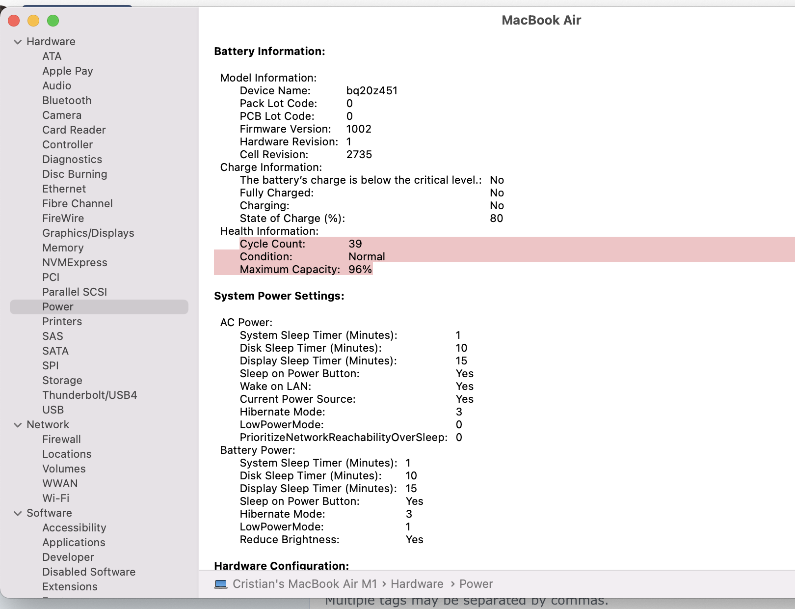 My Macbook Air M1 also....has 39 charge cycles and already at 96% health....IS THIS NORMAL?