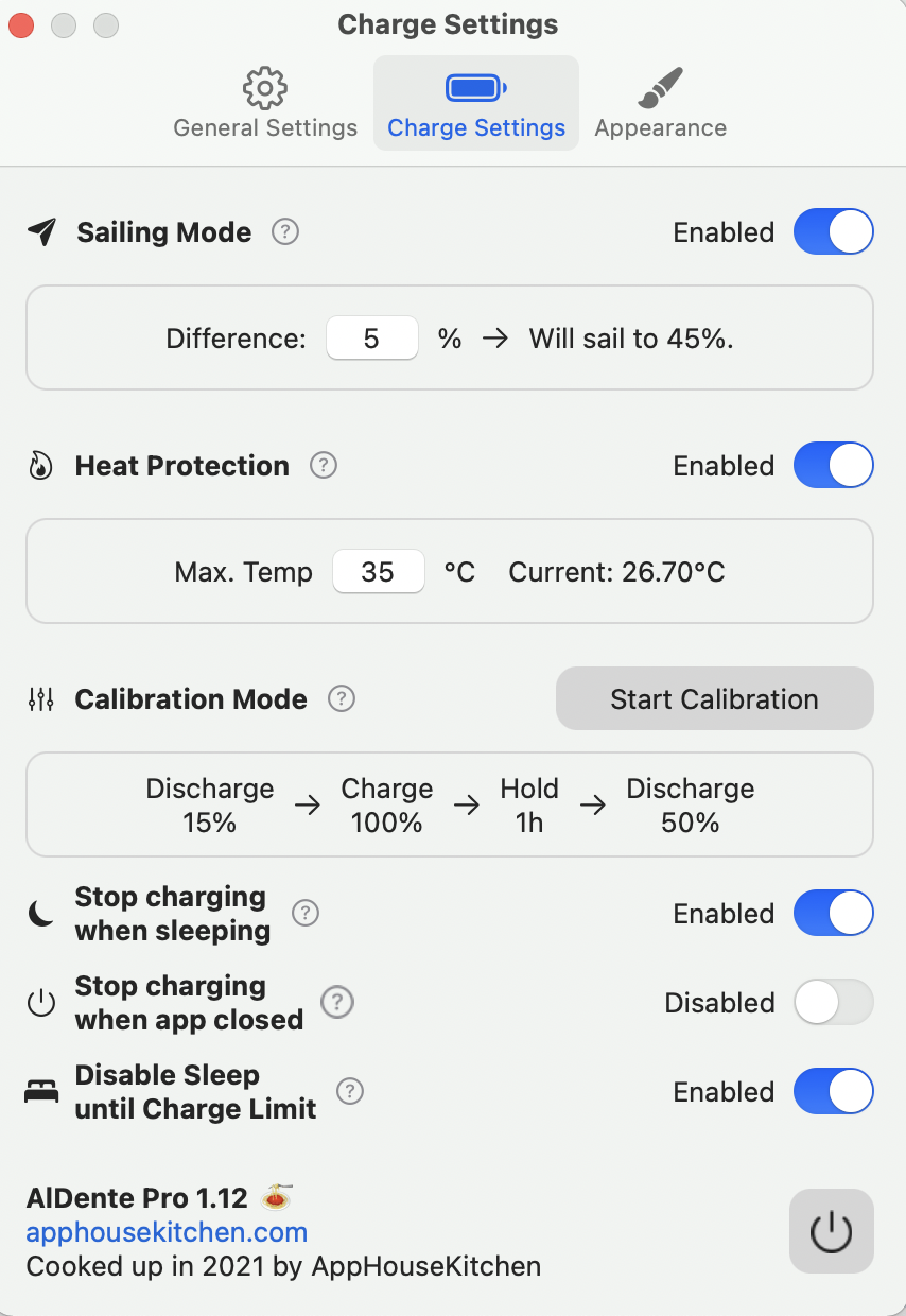 I have AlDente set 50% and all was working well. I have the following AlDente configuration:
