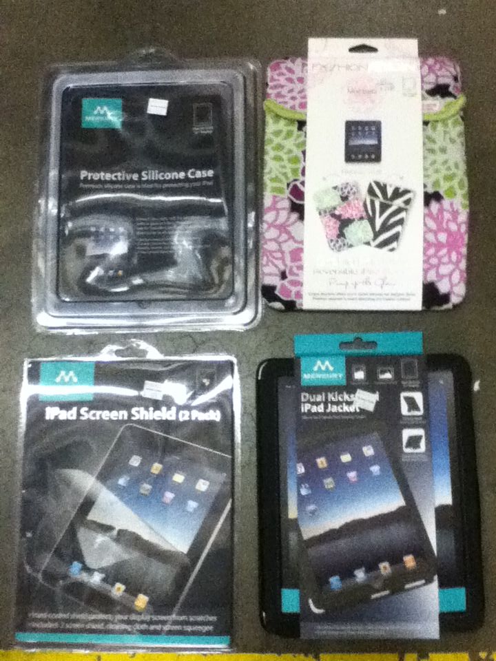 I was at the local BBB and saw they have a few iPad accessories. Only saw four items for now, faux leather case w/ kickstand, screen protectors w/ wipes, silicone case, and a reversible neoprene sleeve. Prices start at $9.99 up to $24.99. Prices are ok, their coupons always help.