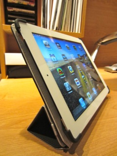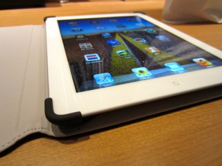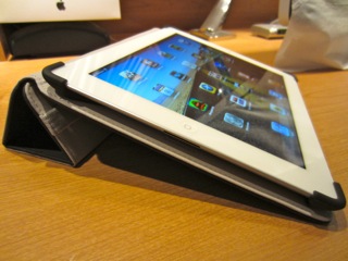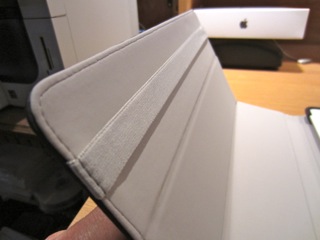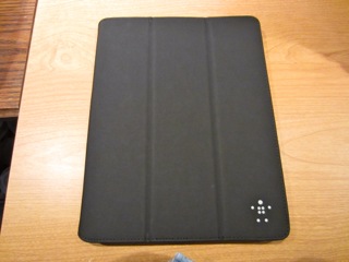 Just got this Belkin Pro Color Trifold case today for my New iPad (3rd generation). After ordering, I had read a review on Amazon that said the sleep/wake function didn't work, so I was concerned about that. The sleep/wake function works great on mine. I really like everything about this case. It's lightweight, relatively slim, looks good, has a great method of holding the iPad that is protective but easy to insert and take out (like the Maroo cases), and the material outside and inside is soft and nice but has really good grip, which is very important to me. I use my iPad a lot for reading books and magazines, and the cover folds flat underneath, and it's very comfortable to hold book-style. Folding the cover into the stand or typing mode also works well. The strap under the cover holds the cover closed when carrying, but it's easy to undo to open it. It's exactly what I've hoped to find for my New iPad. Pics shown below: