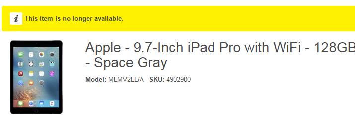 If you read the thread again, the guy did buy on contract...No looks like recall or they were pull I know someone here posted they were sold a Verizon LTE iPad Pro 9.7 for $529 no contract. Thats a no-no