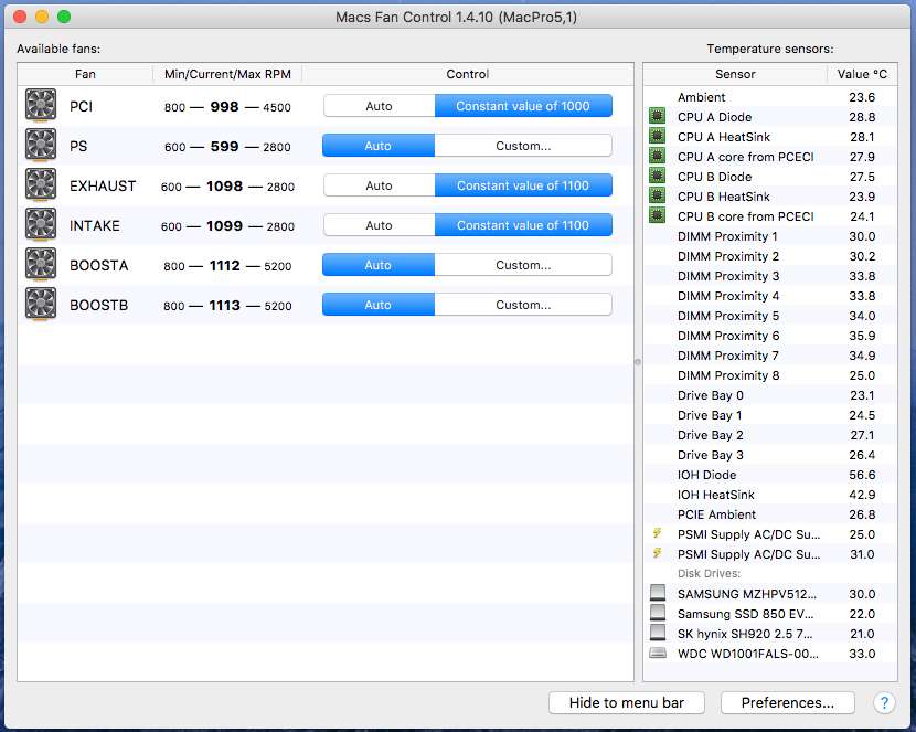 For example when I am running HandBreak to encode Video Files, it uses all 12 Cores of my 2 Intel Xeon CPU's. The temperature with automatic fan speed is between 70-100Celsius. So therefore I need to manually increase the fanspeed, which makes the MP super loud.