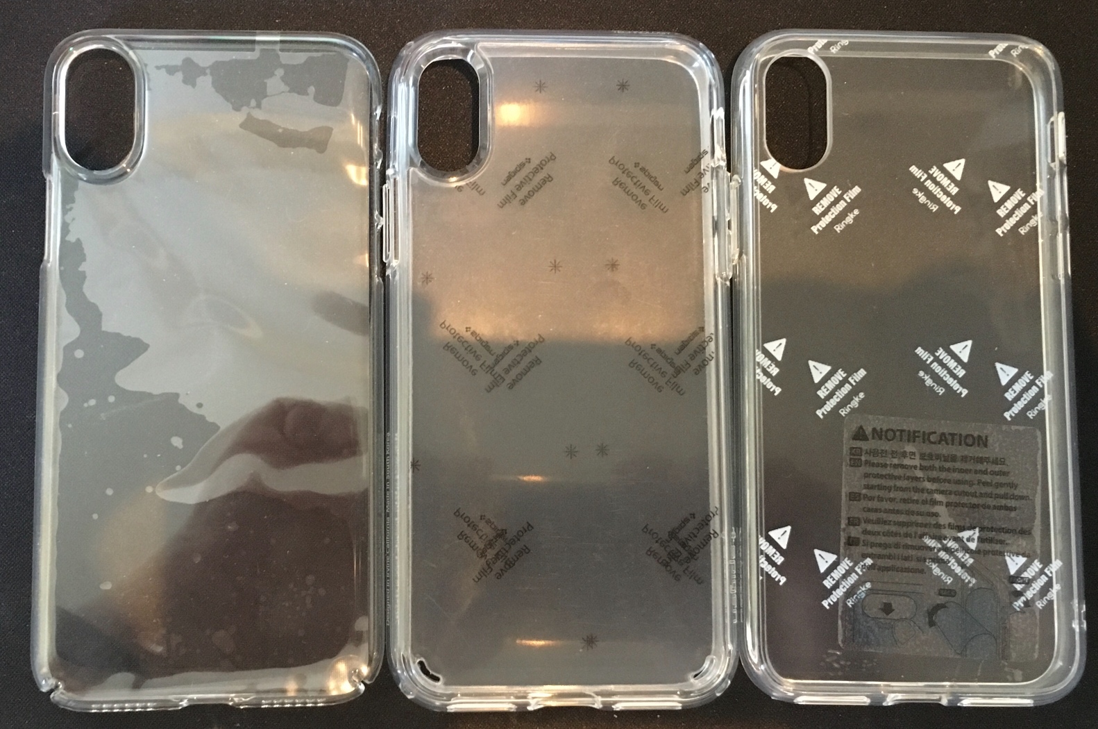Sure. Left to right: caudabe lucid clear, spigen ultra hybrid, ringke fusion.
