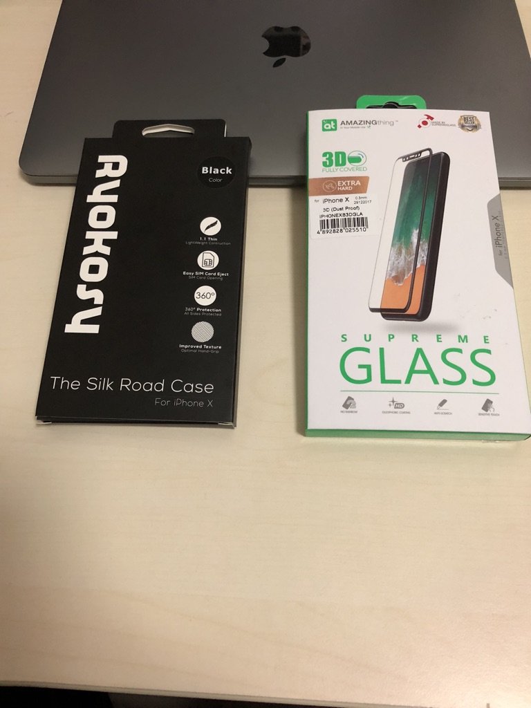the black Ryokosy Silk Road silicone case and the 3D supreme Glass screen protector