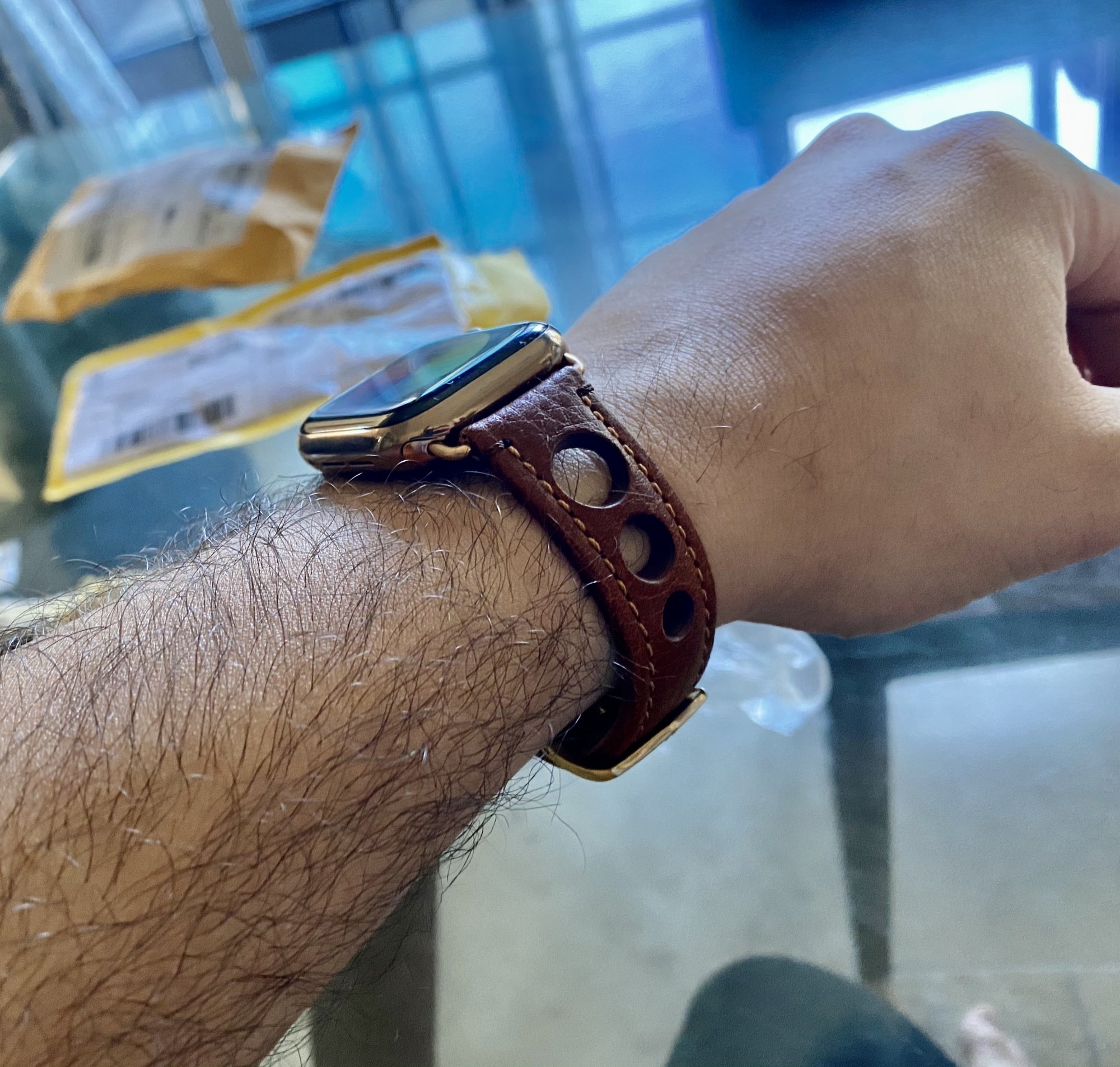 Hey guys, I got my first non-OEM leather band from Coach. It's a great leather strap, only I'm not fond with the lug they used.