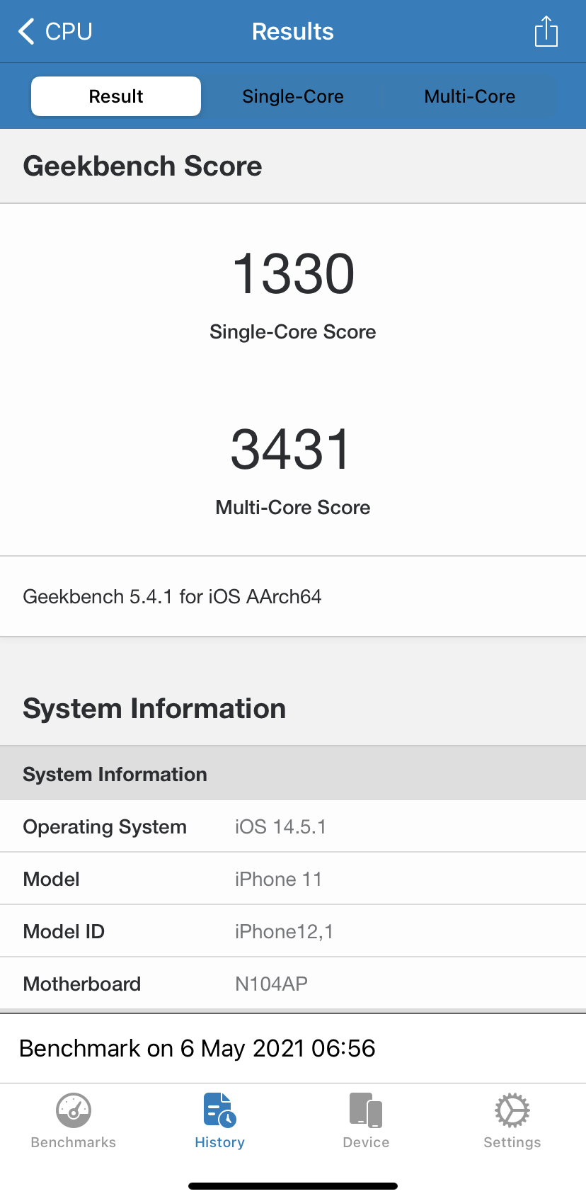 Updated from iOS 14.5 yesterday to iOS 14.5.1 on my iPhone 11. After the update finished, I was playing CODM and noticed the frame rates were horrible. I checked my settings to make that it was set to the max frame rate, which it was. I then ran a geekbench test, and the scores I got were horrible for the multi-core. I then rebooted my phone to no avail; it was still super slow in games and in opening apps. I then proceeded to do a clean install which seems to have fixed the issue. Now my geekbench score is normal, and performance is what it used to be. What is going on, Apple? Anyone else having this issue? Upload a screenshot of your geekbench score on iOS 14.5.1 and tell us what device you have.