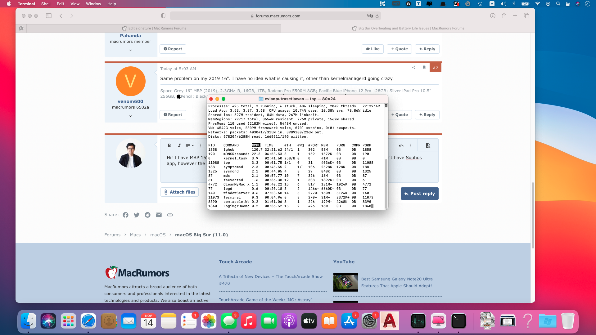 Hi Folks, snce installing Big Sur Public Beta, the battery life on both my MBP's (2020 16" & Late 2013 15") has been dreadful, obviously because it has been overheating like crazy, fans constantly on, regardless of what I was doing.