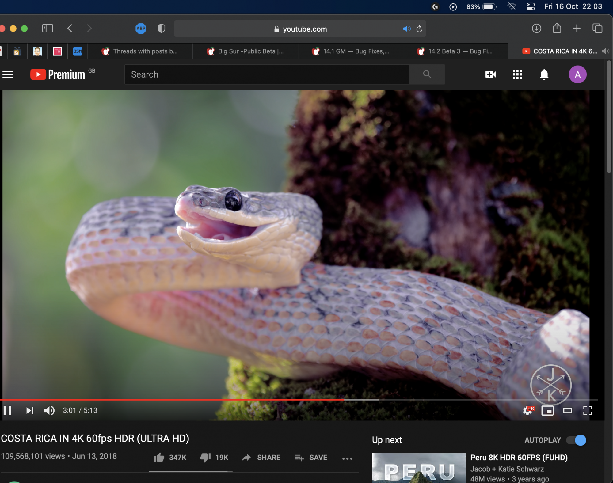 Streaming in 4K, date and time showing on clock, just so you know it's current, and you can see it's Big Sur from the way Safari looks.