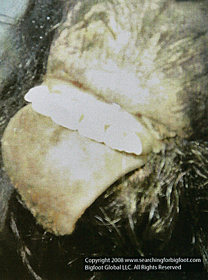 This image shows what is claimed by them to be the mouth area of a deceased bigfoot or sasquatch creature.