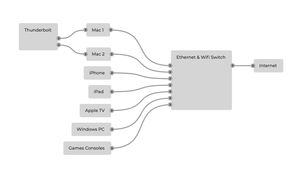 - Thunderbolt to Mac Mini: Manual IP 10.0.0.1