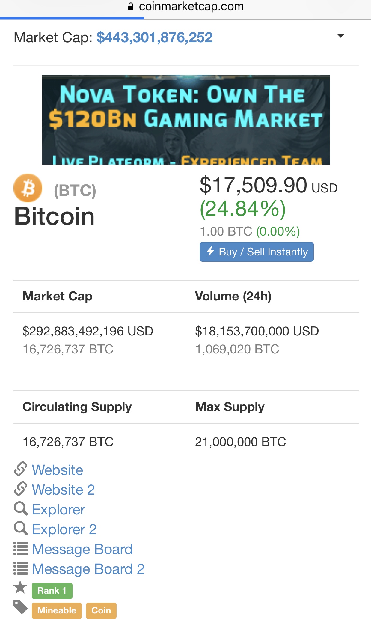 Nope. It was up over $19,000 yesterday.