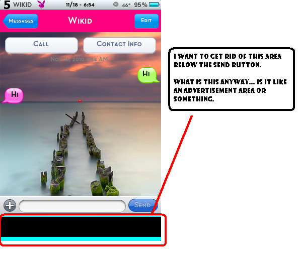 MY PROBLEMS : In the images notice there is an area below the <SEND> button I want to get rid of that .... please advise ...